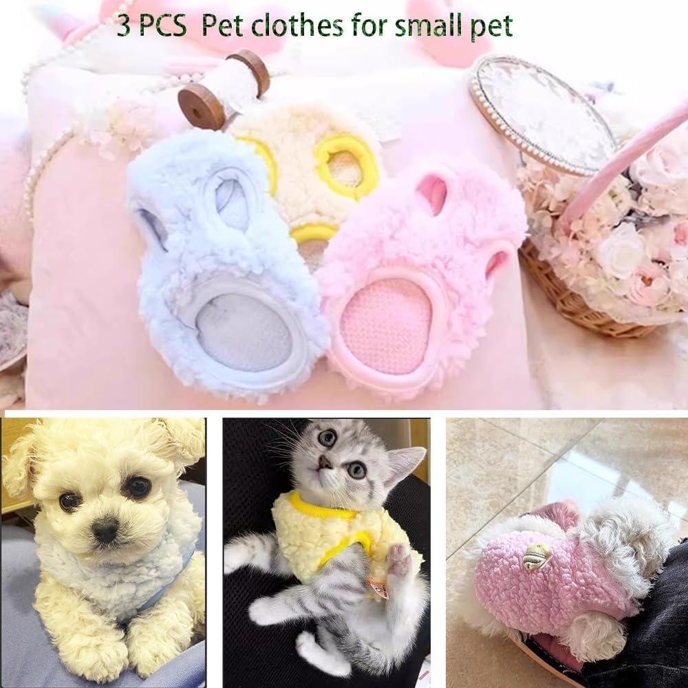 ANIAC 3PCS Extra Small Dog Clothes Girl Boy XXXS Dogs Sweater for Chihuahua Yorkie Teacup Warm Fleece Newborn Puppy Sweatshirt Vest Winter Cat Kitten Outfit (Bee 3S -Chest 8.6″)(Bee(Pink+Blue+Yellow))