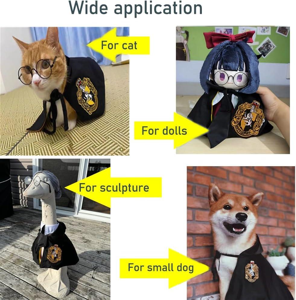 【Size Medium】: Witch cat cloak neck girth/ 11.8-19.6 Inch, Cape length/11.8 Inch, free size dog glasses and cat tie fits 12-14.5”Neck ,suit for small dogs and cats weight about 8-16.5 lbs
