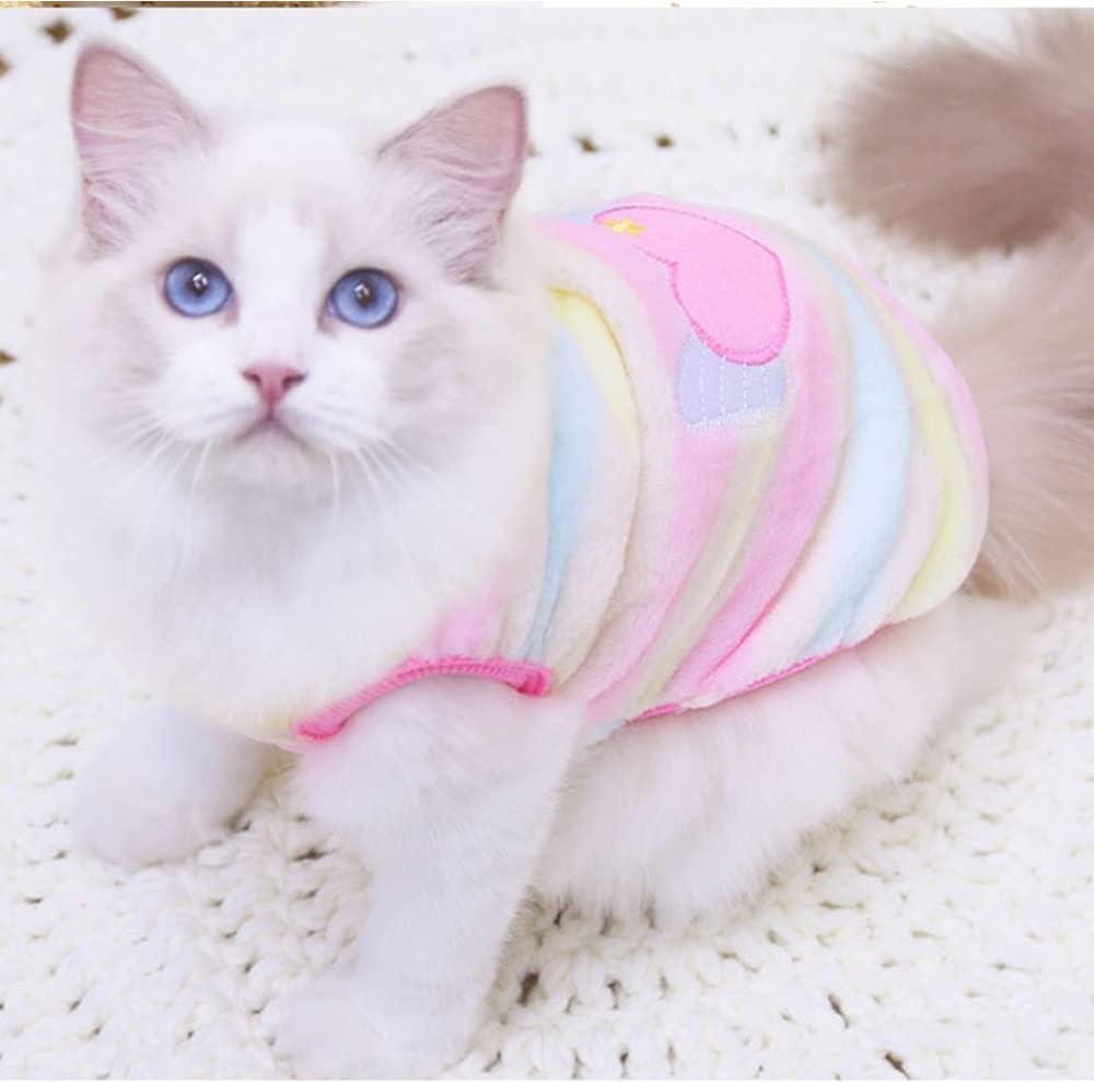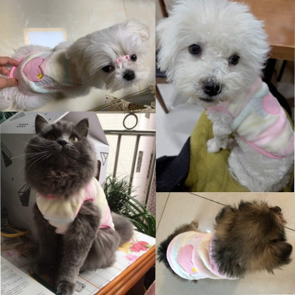 ANIAC Bunny Clothes for Rabbits Warm Kitten Vest Fleece XXXS Dog Shirt Cozy T-Shirt for Bunny Guinea Pig Ferret Puppy Mini Dog and Small Animals (XS, Rainbow)(Heart shape with wing)