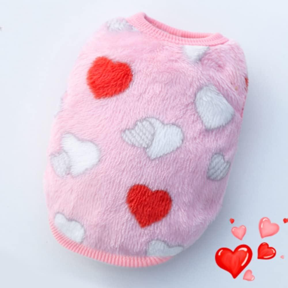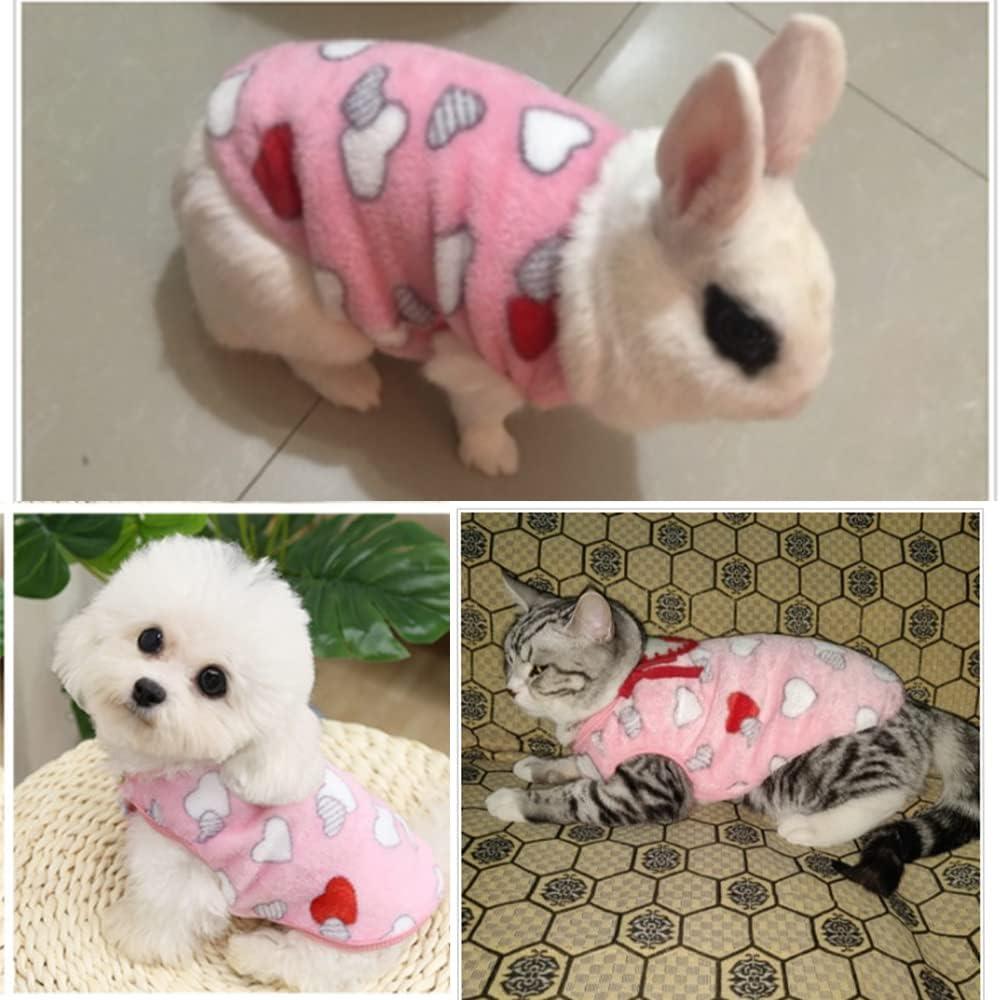 ANIAC Bunny Clothes for Rabbits Warm Kitten Vest Fleece XXXS Dog Shirt Cozy T-Shirt for Bunny Guinea Pig Ferret Puppy Mini Dog and Small Animals (XS, Rainbow)(Pink heart)