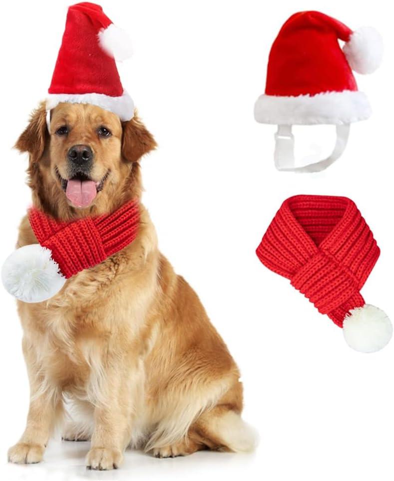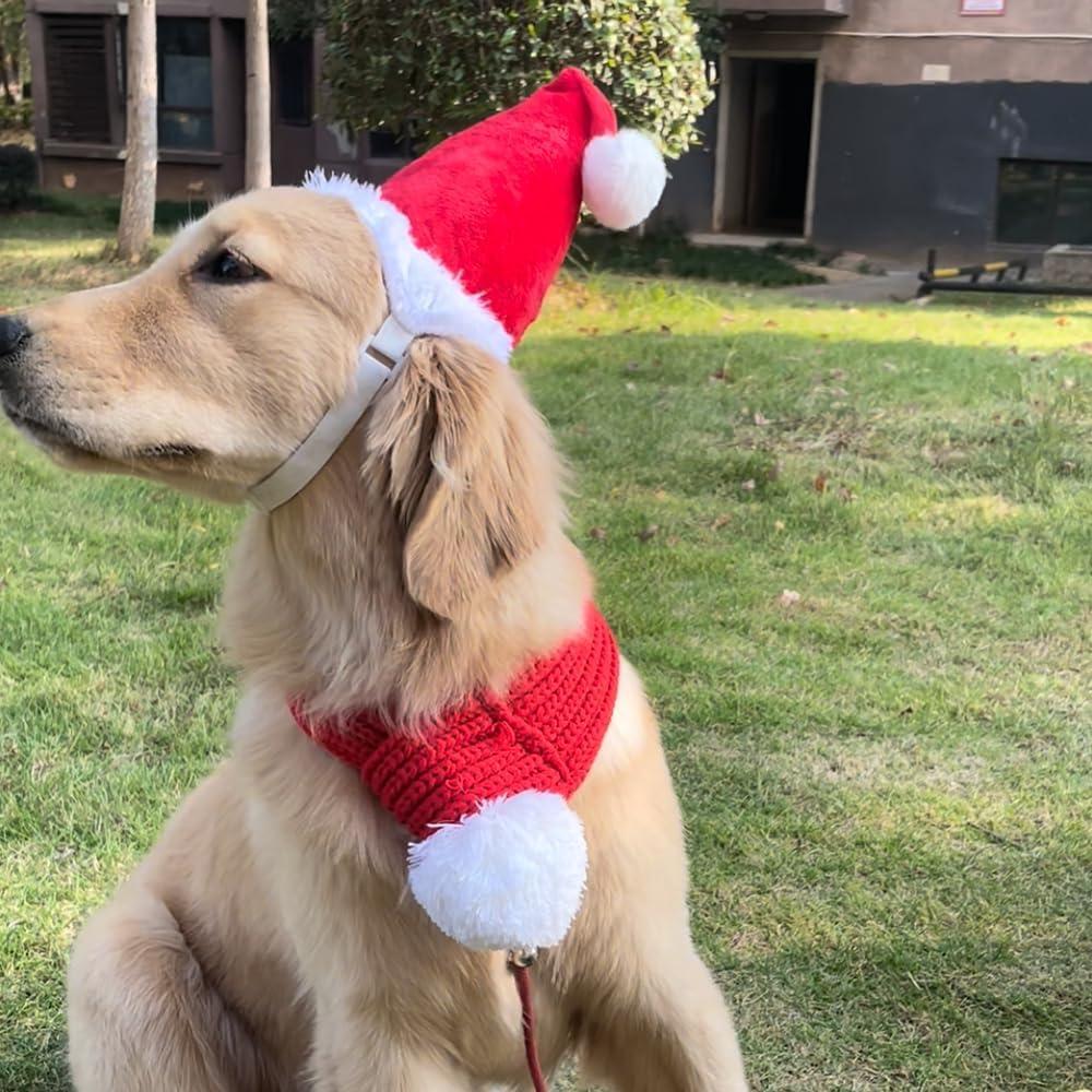 [ Classic Christmas design ]: Featuring the iconic red and white color scheme of Santa's attire. The 3D Shaped Xmas pet cap has a cute pom-pom, and the puppy scarf comes with a big fluffy ball, adding festive charm to your pet