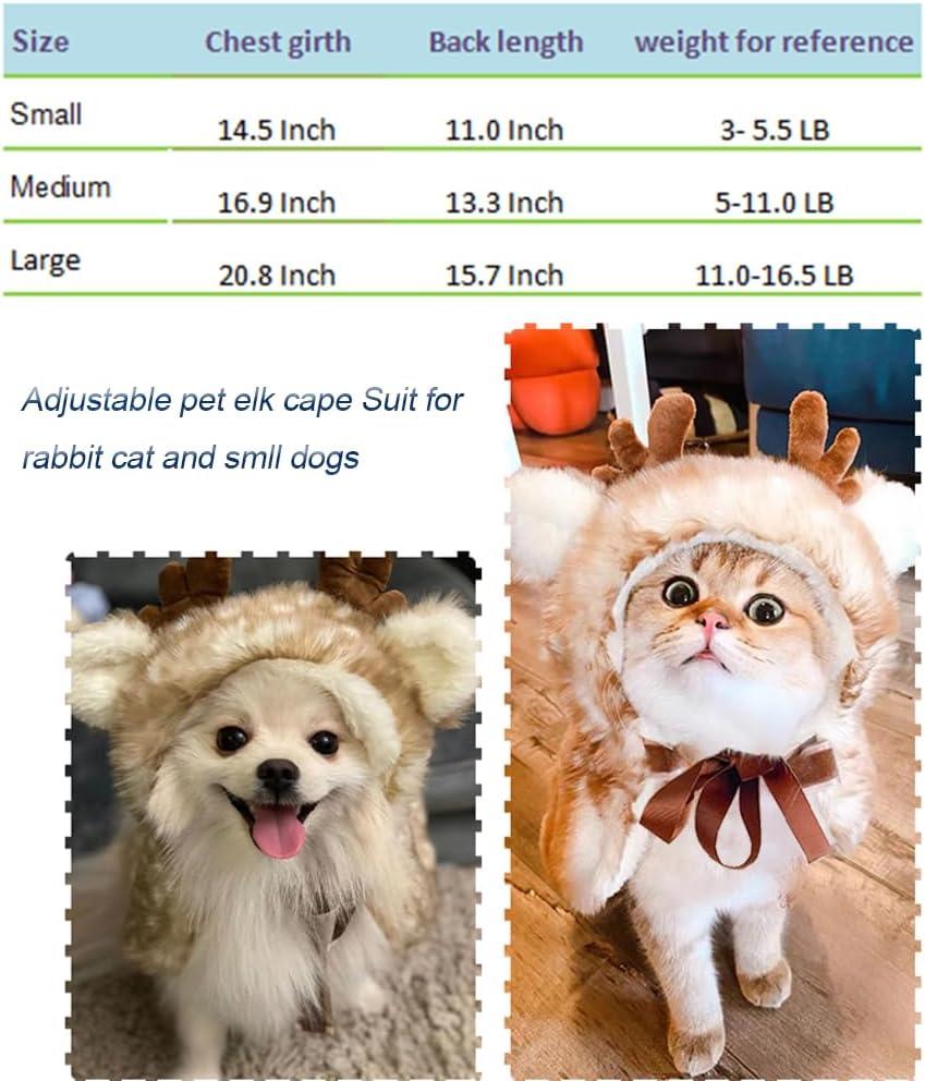 ANIAC Christmas Puppy Reindeer Costume Xmas Dog Elk Cloak with Antlers Cat Santa Cape Christmas Dog Outfit for Small Medium Dog (Medium, Brown)(Brown)