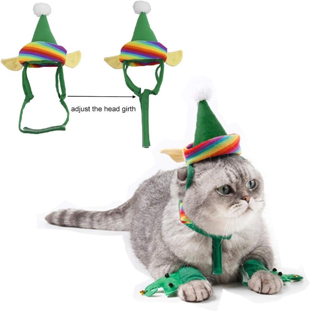 ANIAC Dog Cat Elf Costume – Funny Puppy Headband and Collar Set, Small Dog Christmas Outfit, Hat Accessories for Kitten, Green