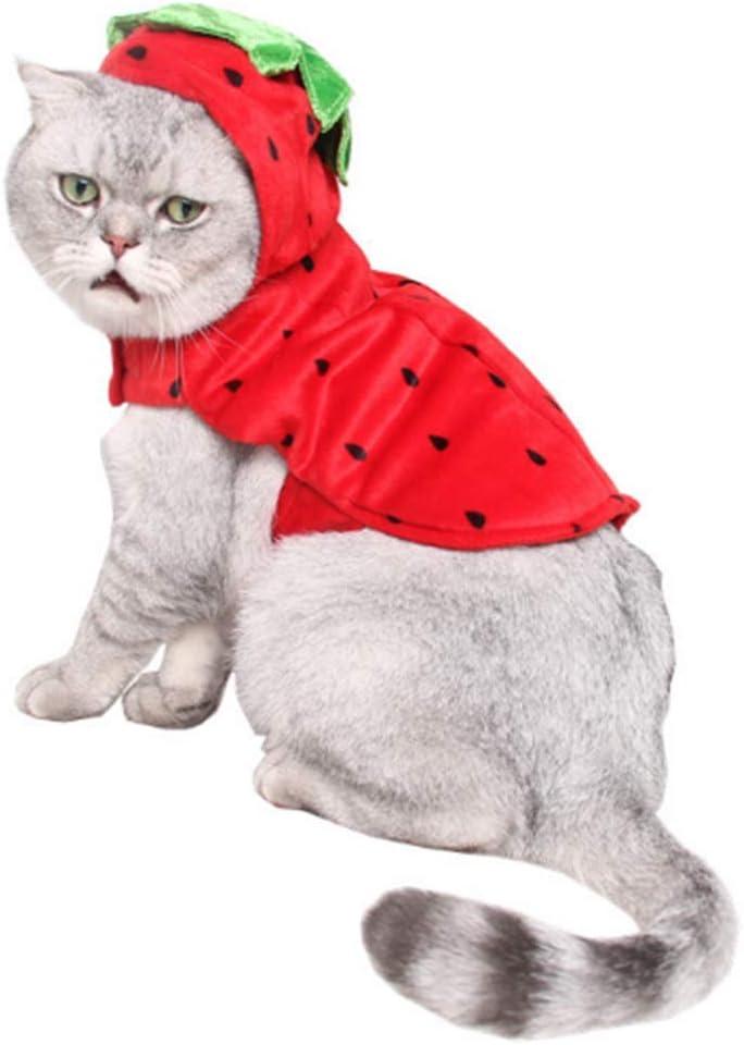 Strawberry cat clothes for cat only size: Length of cat costume: 8.6 inch (not including hat); Neck Girth: 12.5 inch – 14.2 inch;fits most cat,rabbits and small dogs Chest Girth:17 inch – 18.5 inch