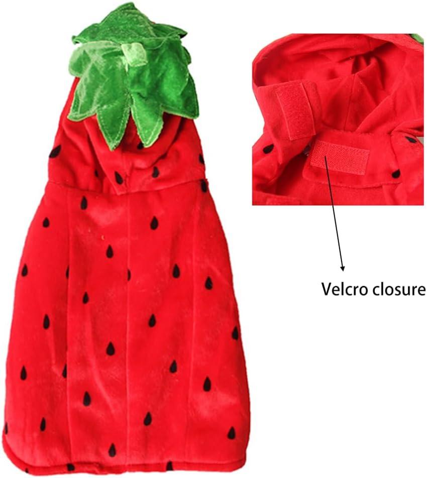 ANIAC Dog Halloween Costume Strawberry Cat Costume Red Puppy Hoody Christmas Dog Outfit with hat Warm Coat Pet Santa Poncho for Cats and Small Dogs