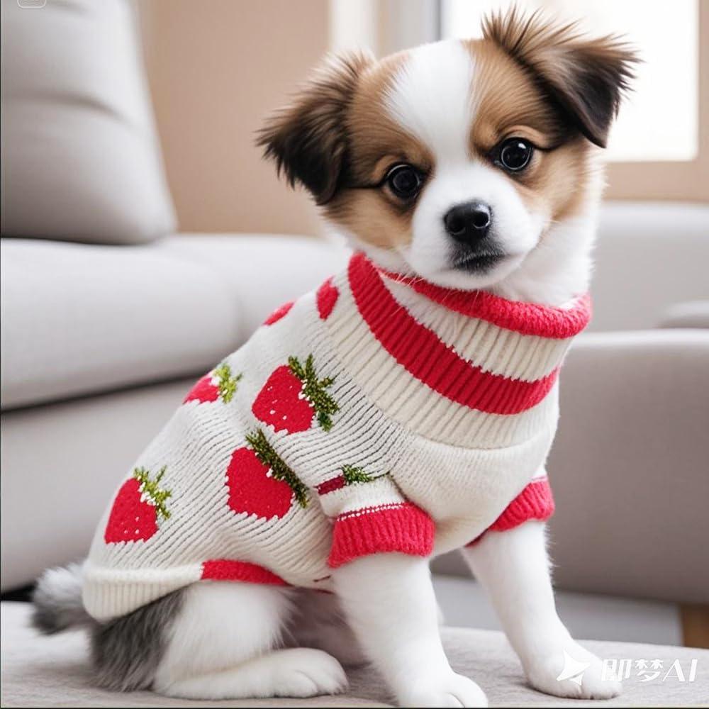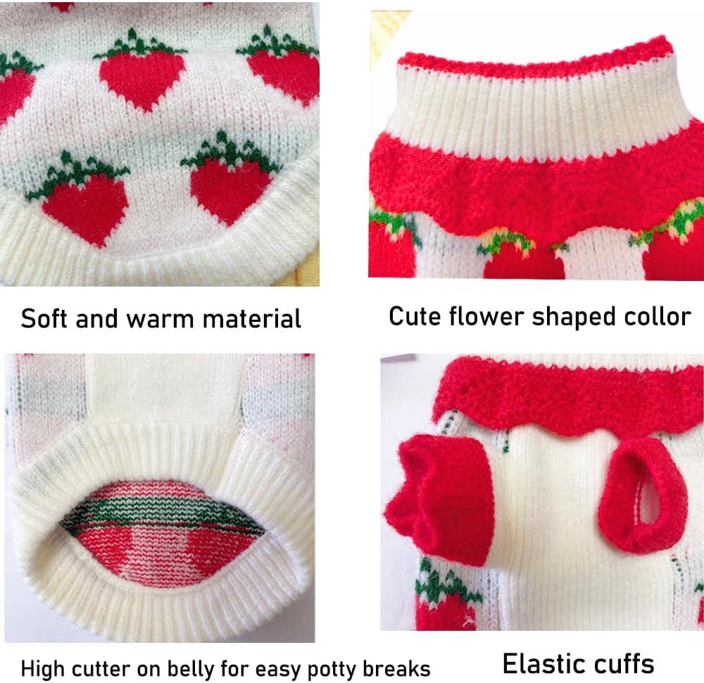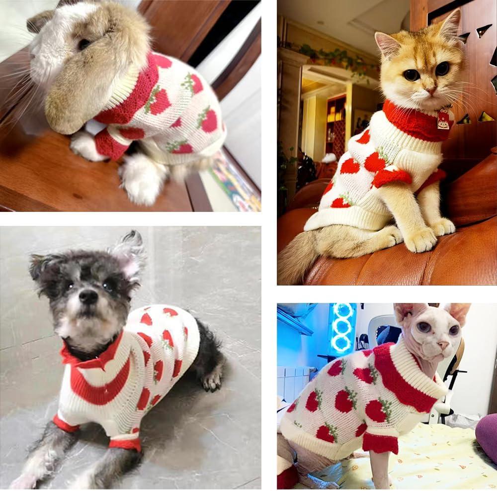 ANIAC Fall Dog Sweater for Small Dog Girl Strawberry Knitted Cat Sweater Winter Puppy Clothes Turtleneck Kitten Knitwear Could Weather Outfit for Teacup Chihuahua Yorkie Poodle (X-Small, Orange)(Red strawberry)