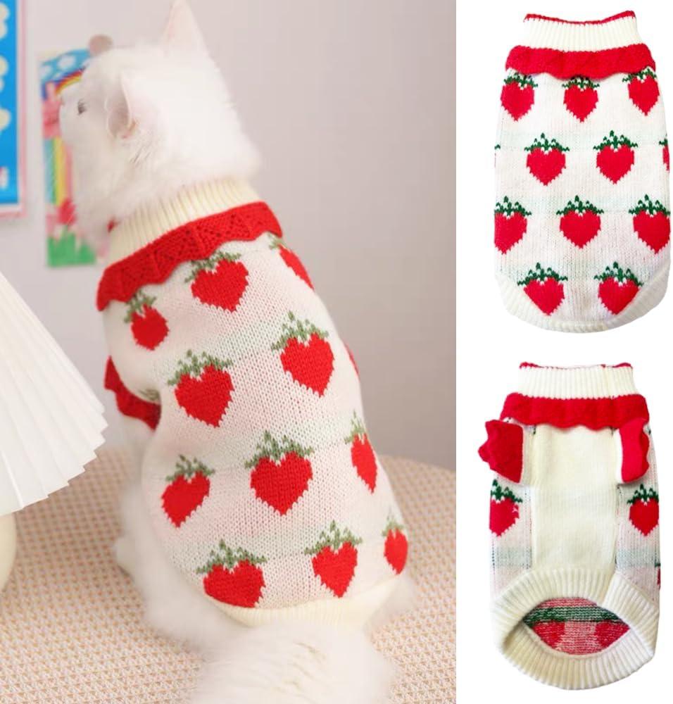 Lovely strawberry pattern will make your pet looks more energetic in cold day. dressing the warm kitten sweater, not only for preventing hair loss but also for keeping warm