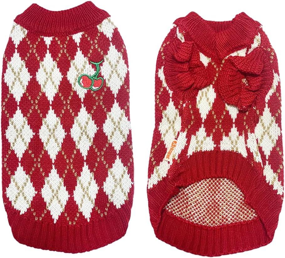 ANIAC Fall Dog Sweater for Small Dog Girl Strawberry Knitted Cat Sweater Winter Puppy Clothes Turtleneck Kitten Knitwear Could Weather Outfit for Teacup Chihuahua Yorkie Poodle (X-Small, Orange)(Red)