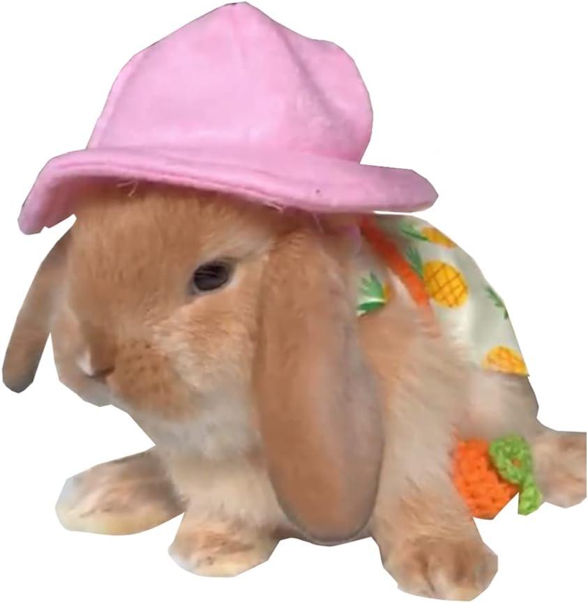 ANIAC Funny Cat Hat for Cat XXS Dog Sun Hat with Ears Hole Rabbit Outfit for Bunny Mini Sombrero Puppy Hat Party Costume Head Accessories for Kitten Kitty Small Breeds (Yellow)(Pink-3)