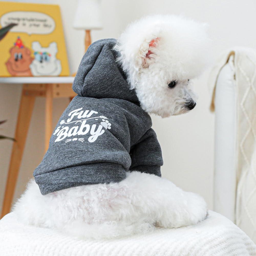 ANIAC Happy Dog Hoodies Fall Puppy Clothes for Small Dog Girl Boy Hooded Dog Sweatshirt Winter Cat Clothes Warm Pet Sweater Cold Weather Coat for Kitten Chihuahua Yorkie (Blue, Small)(Grey)